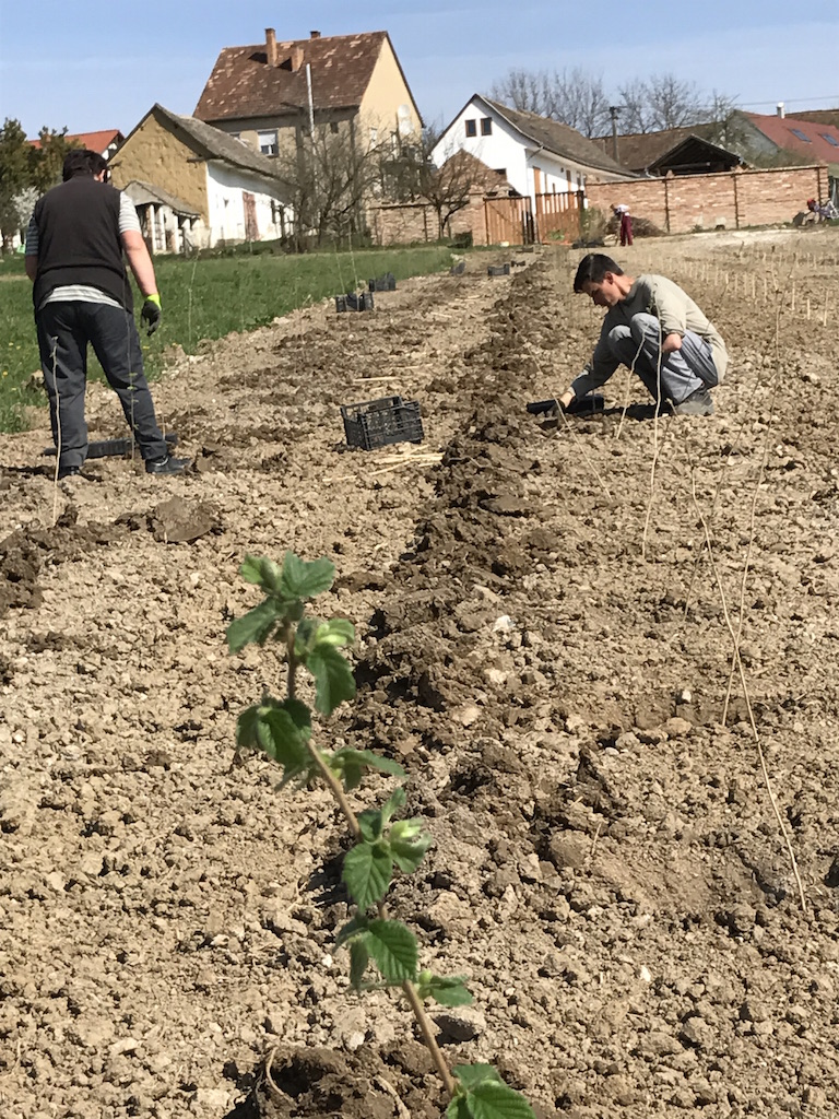 2017 tavaszán 1000db nyári szarvasgombával „oltott”mogyoró magoncot telepítettünk.A telepítést gondos talajvizsgálat előzte meg melynek eredménye alapján a talaj mésztartalmán emelnünk kellett így a területen 6 tonna mészkő őrleményt terítettünk el.Az eldolgozást követően rotálva lett a föld ,így juttattuk a mélyebb rétegekbe a meszet.