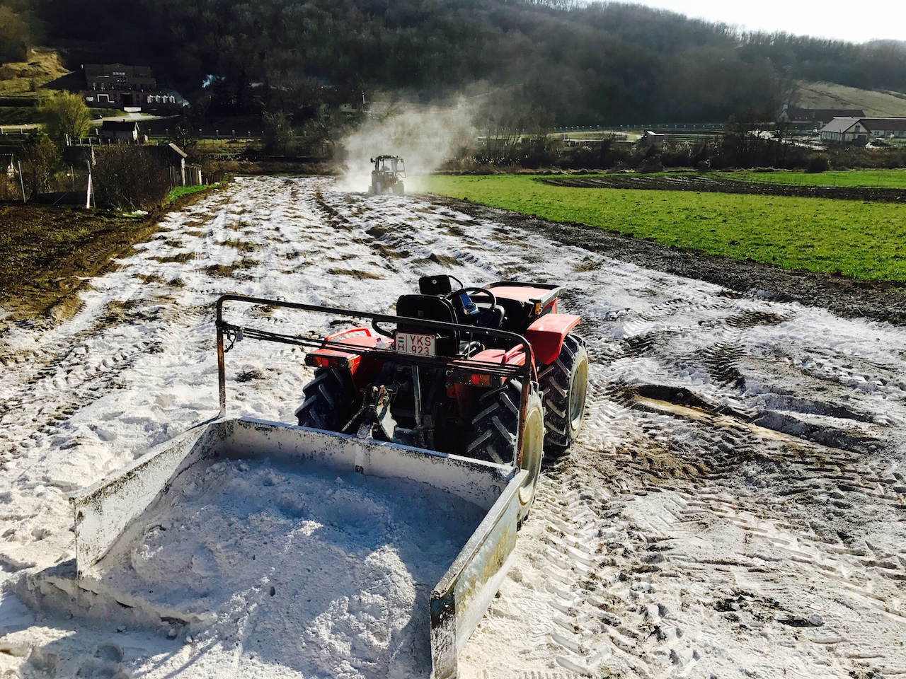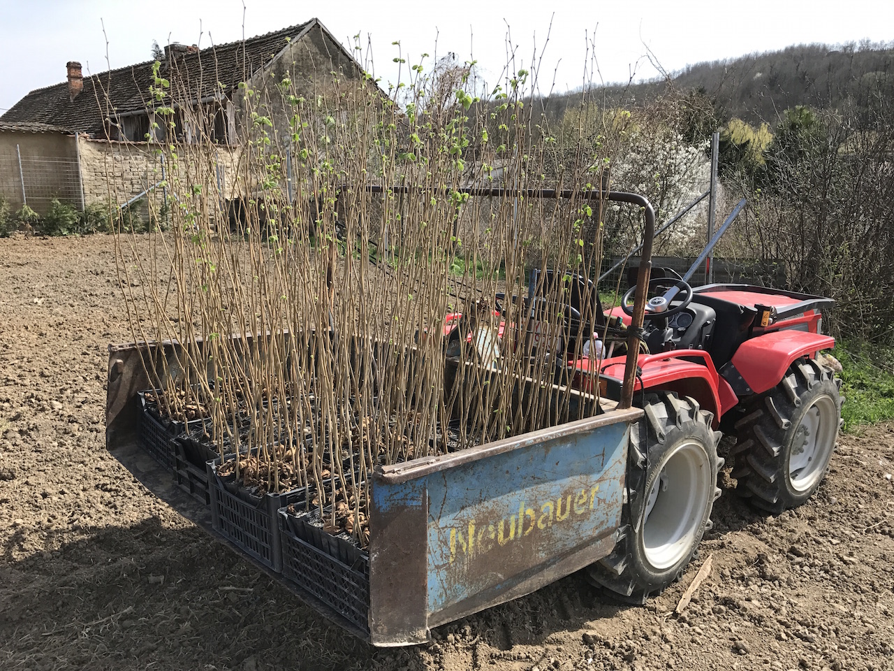2017 tavaszán 1000db nyári szarvasgombával „oltott”mogyoró magoncot telepítettünk.A telepítést gondos talajvizsgálat előzte meg melynek eredménye alapján a talaj mésztartalmán emelnünk kellett így a területen 6 tonna mészkő őrleményt terítettünk el.Az eldolgozást követően rotálva lett a föld ,így juttattuk a mélyebb rétegekbe a meszet.